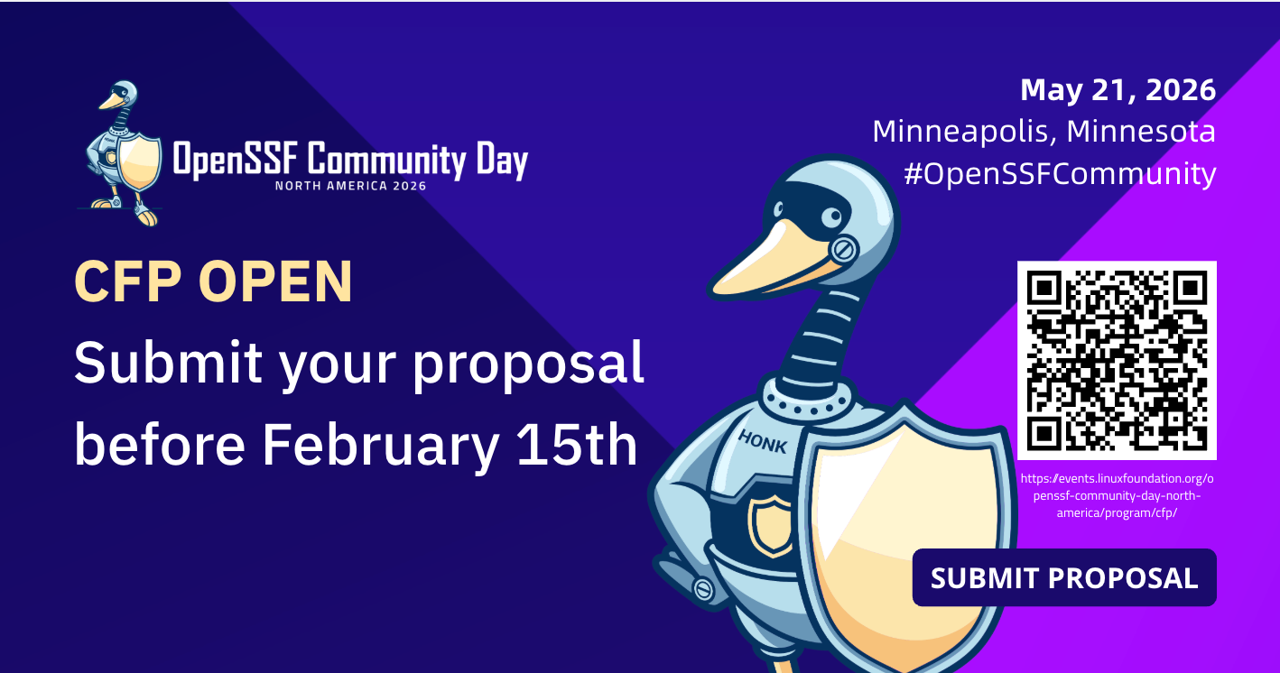 CFP – OpenSSF Community Day North America February 1 - February 15 🗓 CFP closes: February 15 at 11:59 PM CT 📍 Event date: Thursday, May 21 👉 Submit your proposal
